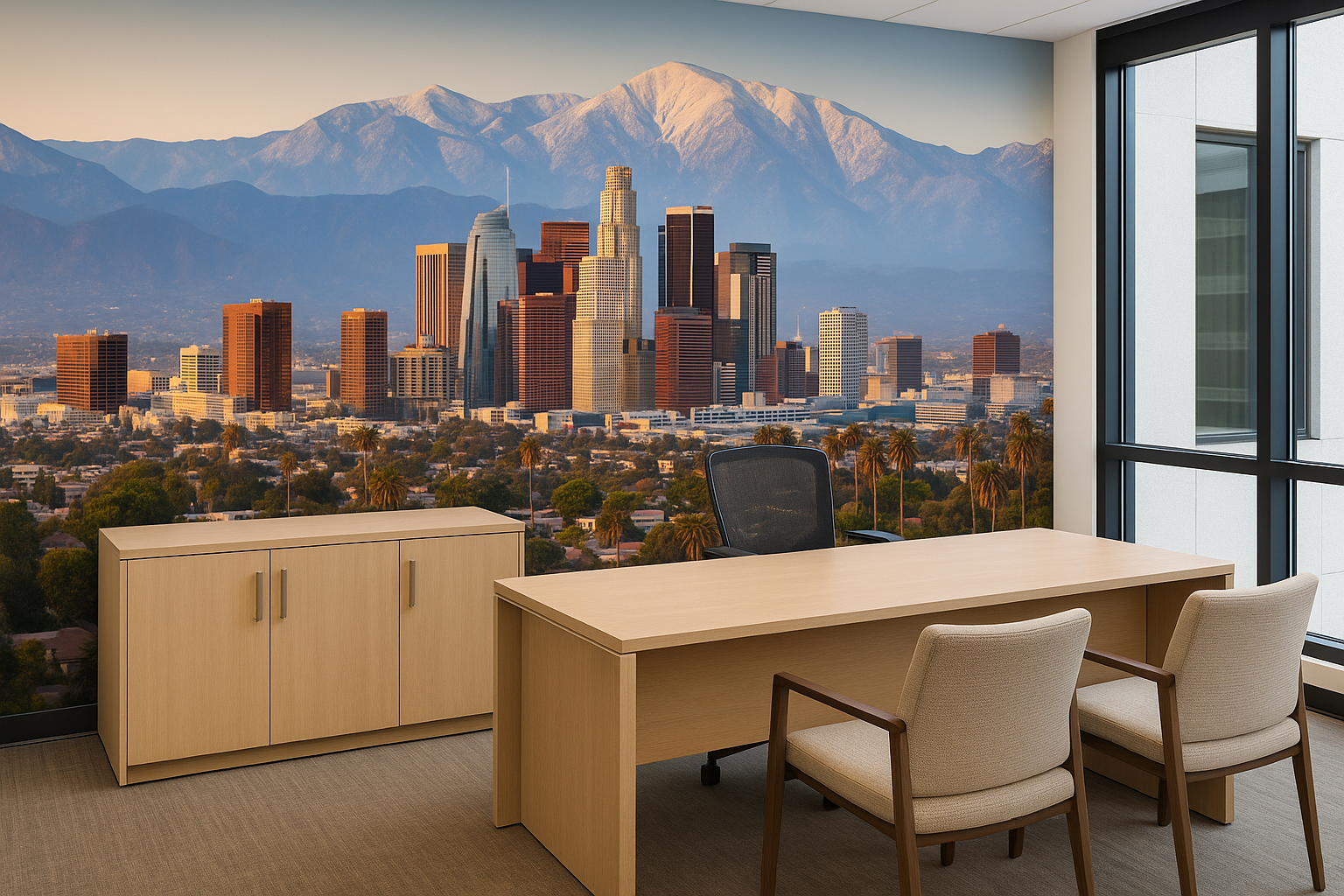 Transform your space with custom wall murals designed for Los Angeles homes and businesses. From skyline views of Downtown LA to modern abstract designs for Hollywood studios, our murals are printed in high resolution and scaled to your exact wall dimensions. Perfect for residential feature walls, restaurants, retail spaces, and corporate offices across Southern California, Applied Coverings murals turn blank walls into immersive experiences.