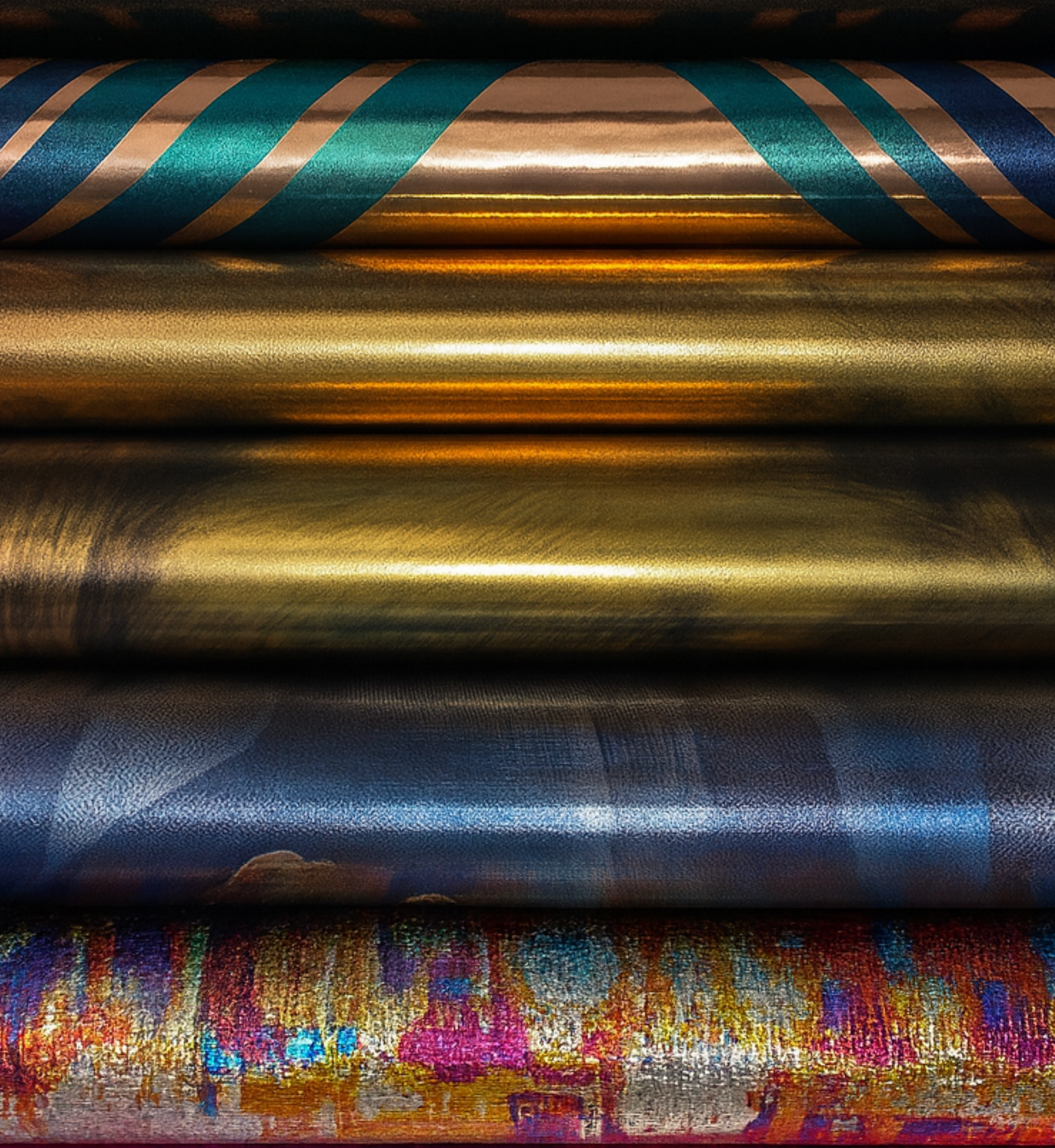 In addition to our core wallcovering options, we offer an expanded catalog of specialty finishes and premium films. From metallic wallcoverings in silver and gold to 3M adhesive-backed vinyl and other unique substrates, we can source and print on specialty materials that bring your vision to life.